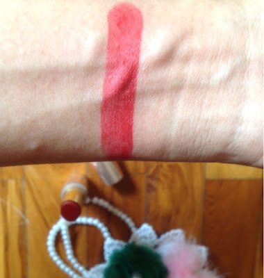 Warnanya merah dengan hint apa ya begini ini? Saya kok susah ya kalo disuruh njelasin bedanya warna merah yang macemnya buanyak itu, pas baca di blogger sih dia ada hint mocha tapi kok kalo di swatch di tangan saya malah seperti ke oranye ya. Atau saya yang siwer? ada yang mau bantu jelasin nggak? *garuk gigik*. Yang jelas dia masuk ke warm-tone-red.